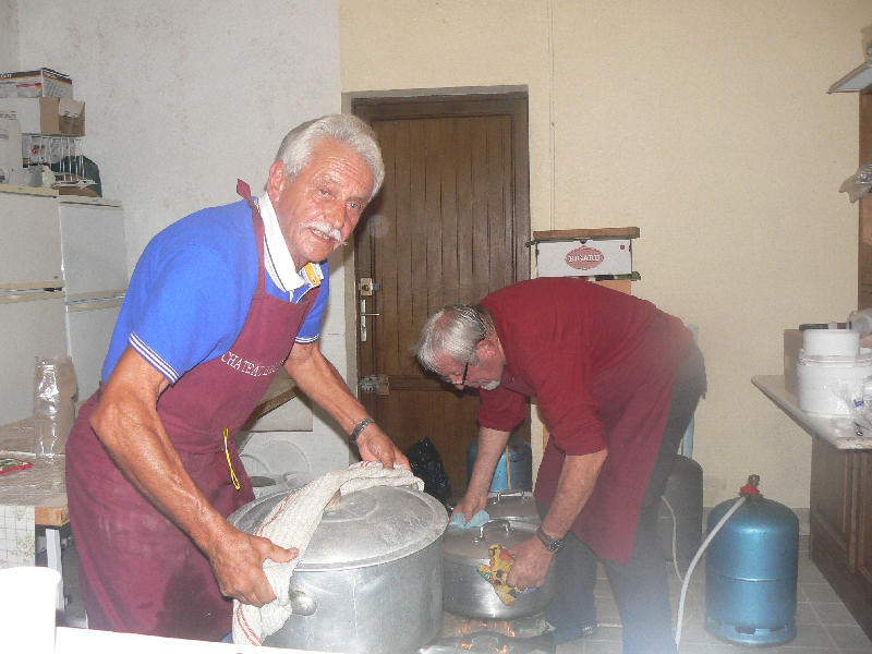 s'agitent .Déjeuner surprise dehors à l'occasion de la St Michel,