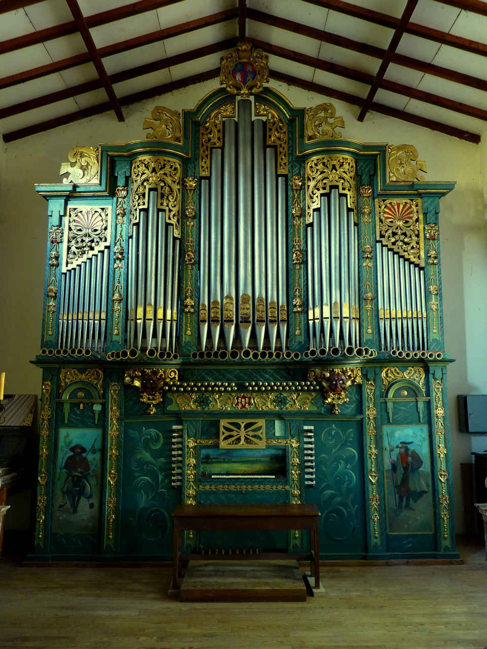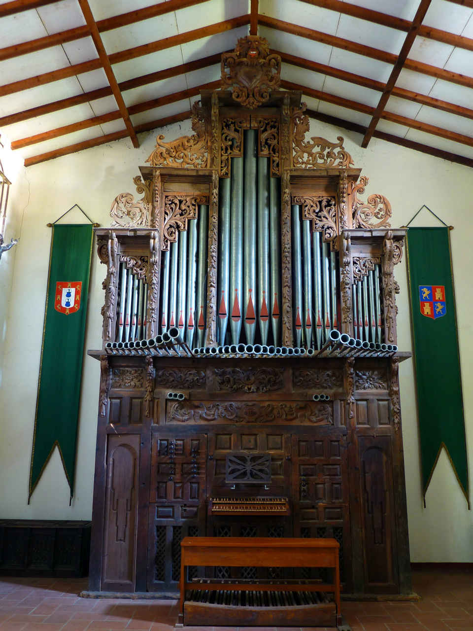 En Castille Francis Chapelet rachète un buffet qui devait finir à plus ou moins brève échéance dans une décharge. Il le nettoie, le restaure et fait construire par G.Grenzing en 1978 un instrument dans le style Majorquin mais en permettant une plus grande ouverture du répertoire. Le buffet de 1736 en pin est très ouvré mais non polychromé.