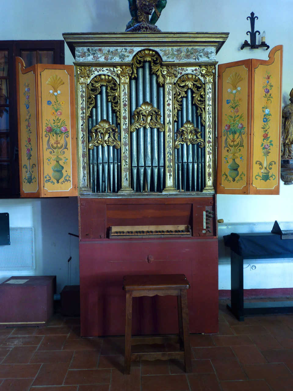 Orgue3 : En 1982 B.Formentelli (facteur italien) restaure un petit positif Napolitain du début du XVIIIème siècle (Facteur CIMINO de l'école Napolitaine 1710) . Francis Chapelet le rachète. Le buffet est polychromé d'origine avec dorures à la feuille; les volets sont ajoutés et peints par Roger Chapelet.