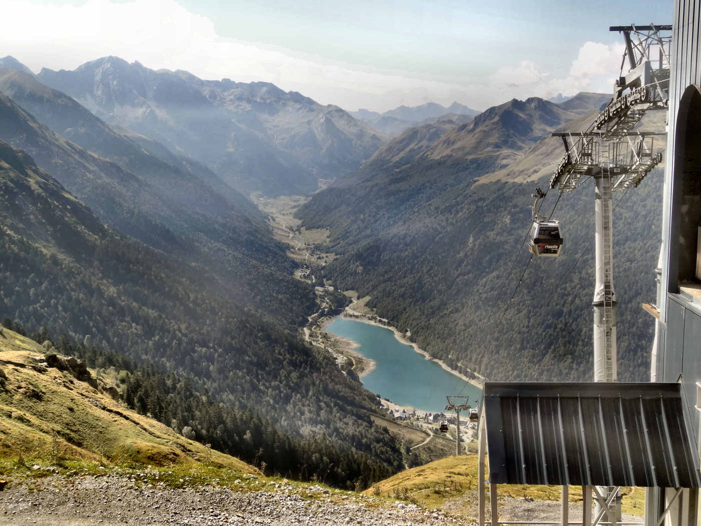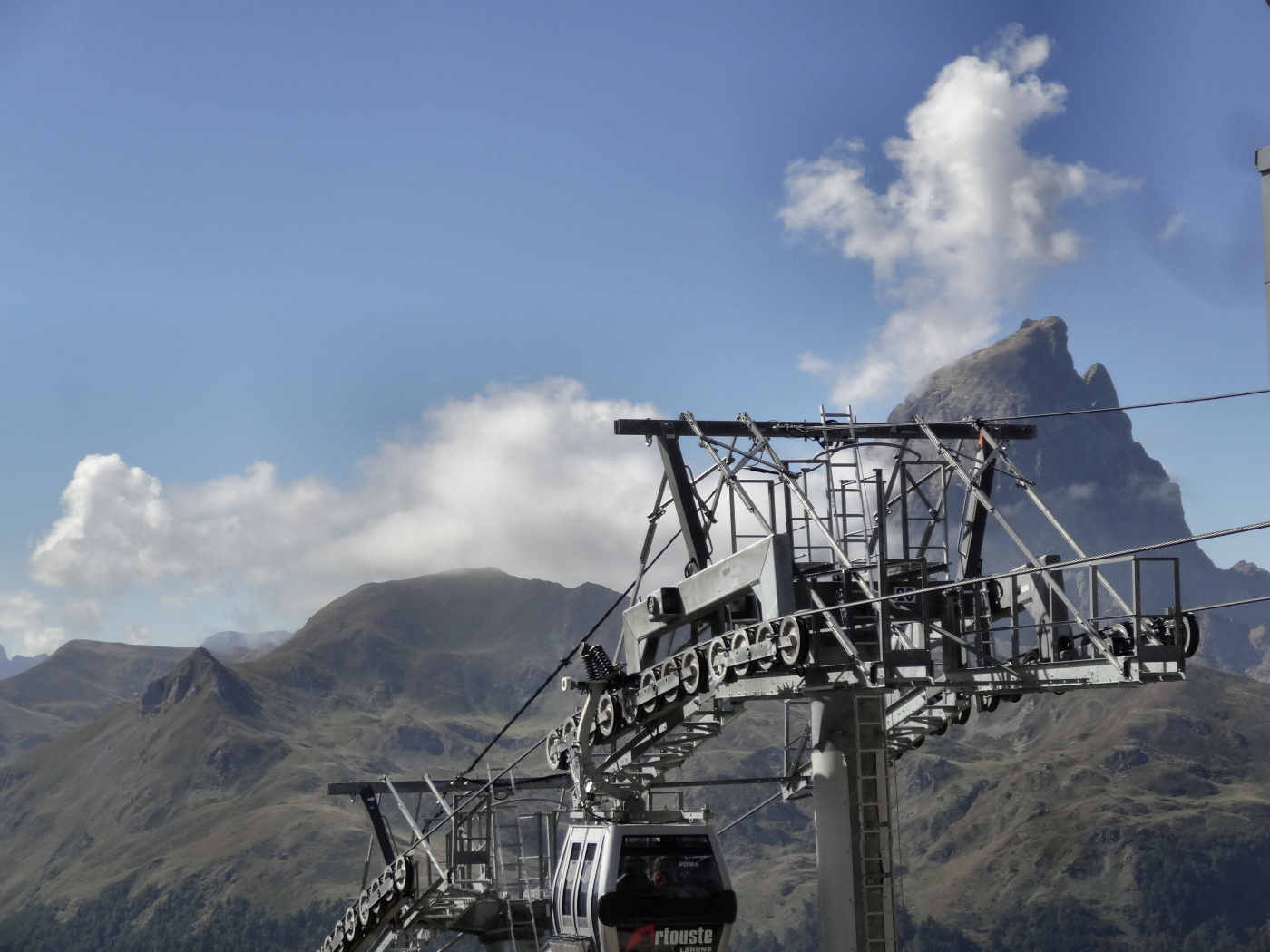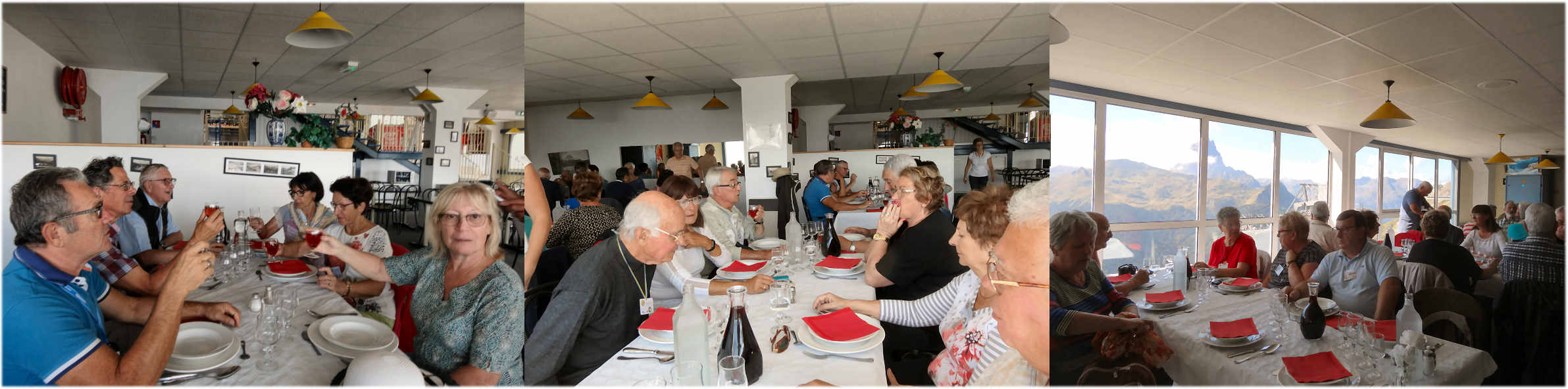 A 12h nous partons en télécabine vers le restaurant d'altitude où nous dégustons une très bonne garbure. Nous avons une vue imprenable sur le lac de FAGREGE et le Pic du Midi d'OSSAU.