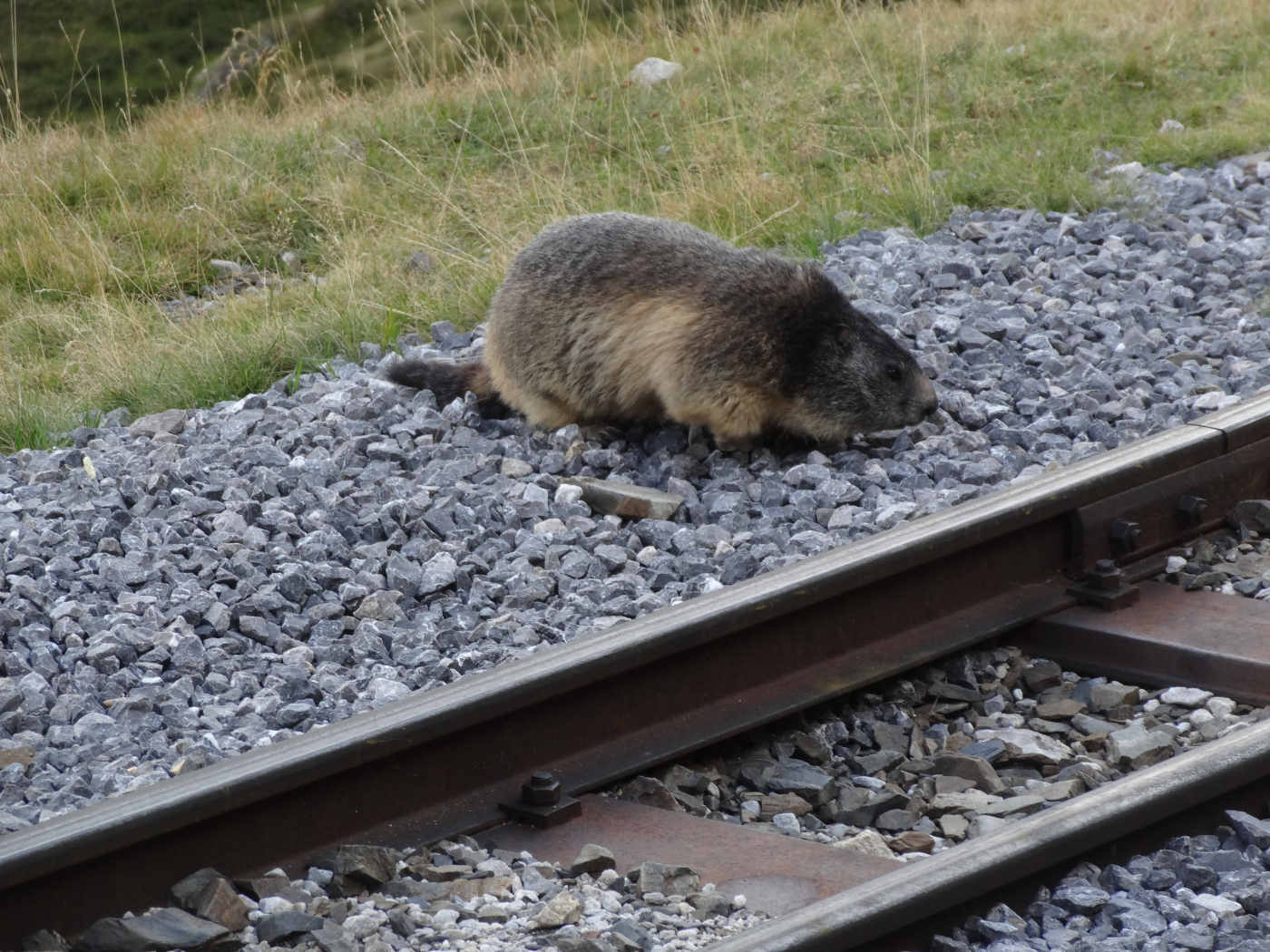 et impressionnant. Le soleil est de la partie ainsi que des marmottes. Après une heure de voyage nous arrivons à la gare terminus du lac.