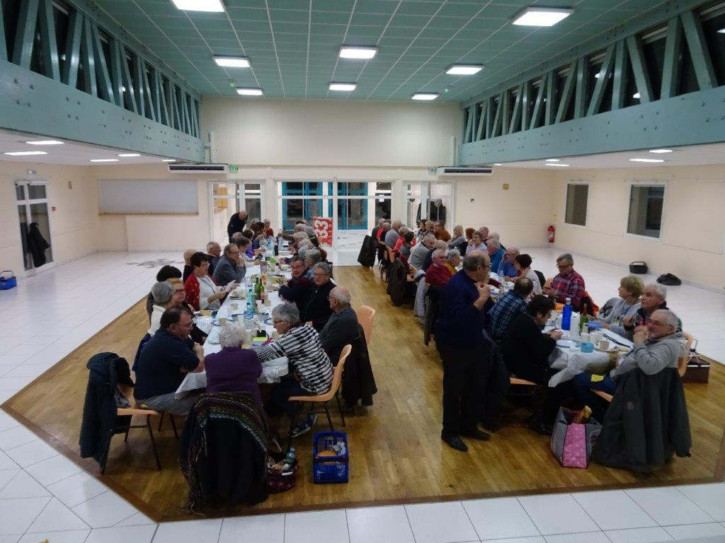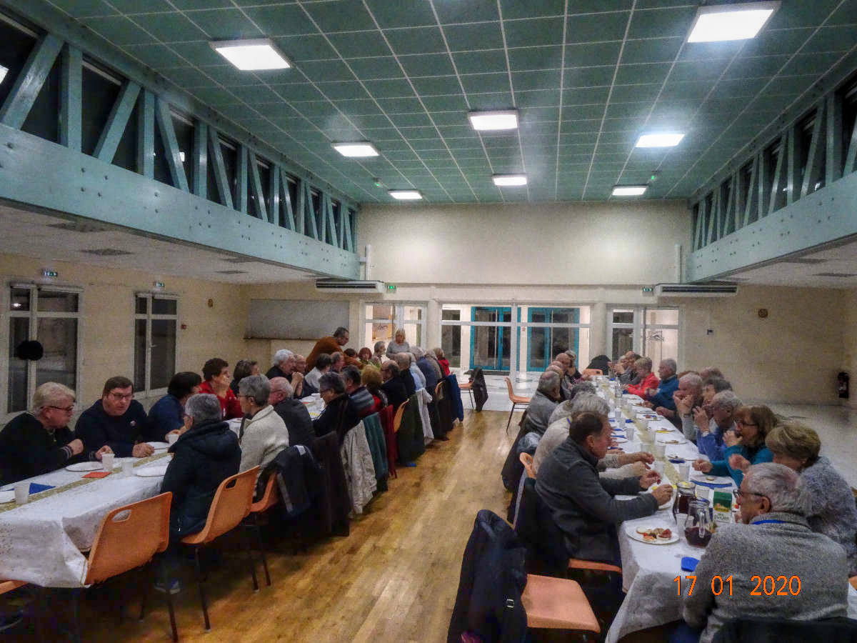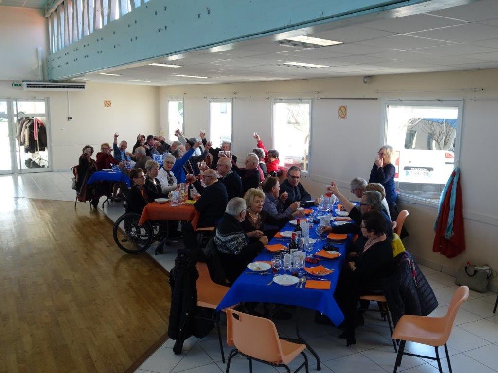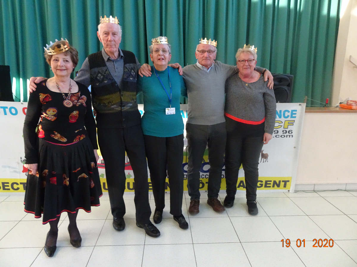A midi nous commençons par la remise des récompenses du concours de belote à tous les participants et nous nous mîmes à table pour un repas dansant animé par notre DJ : Marc qui doit être remercié pour la qualité de ses danses toujours adaptées à son auditoire. Nous avons apprécié le très bon repas préparé par le restaurateur local : L’HIRONDELLE et comme nous fêtions « LES ROIS » il y en a eu bien sûr, les REINES n’ont pas été oubliées …. La journée s’est terminée tardivement avec la participation de tous pour le rangement du matériel et le nettoyage de la salle.