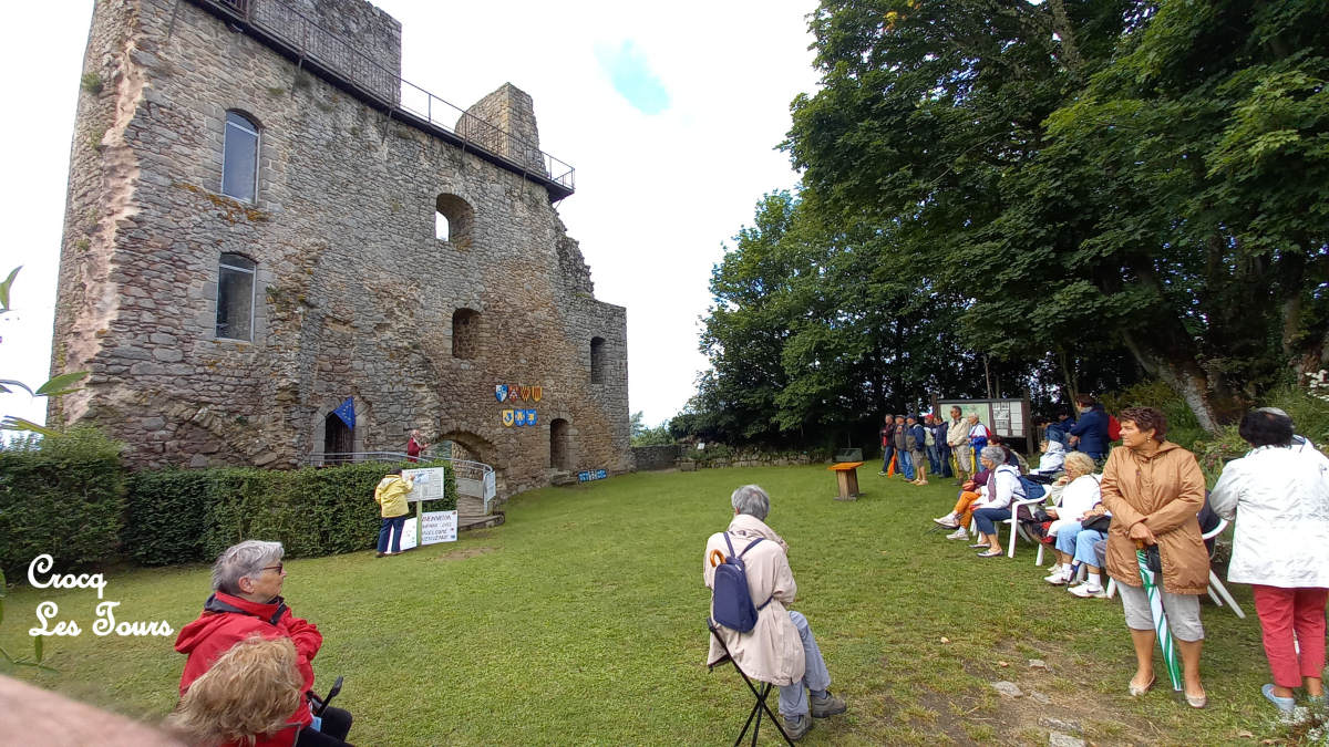 À Felletin, pour compenser l’absence des groupes folkloriques venant du monde entier, des groupes musicaux se sont donnés en concert. Une balade musicale commencée sous la pluie s’est bien poursuivie, par quelques pauses, pour nous mener jusqu’au belvédère afin de se voir détailler le panorama.